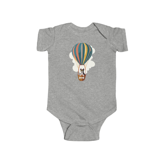 Dog on a Hot Air Balloon Baby Snapsuit, Cute Puppy Flying on Air Balloon Baby Bodysuit